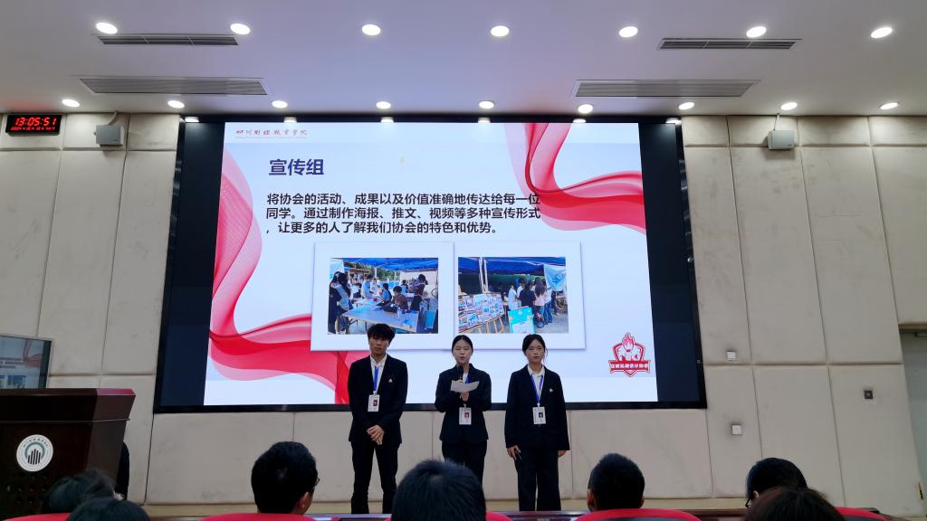 会议议程第二项,协会各组进行介绍,包括红财智行组(新增)、项目实践组、竞赛突破组、考证研习组、宣传策划组、秘书事务组。各组尽显独特才华,为协会争光添彩,同时又共同进步,力求把协会发展成集红色会计文化传承、专业学习、竞赛、考证、对外宣传等为一体的交流平台。