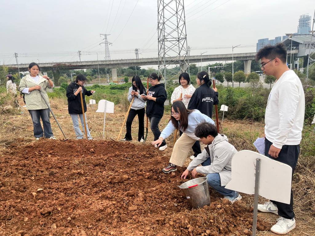 农耕知识和经验丰富的同学在劳作过程中给同伴细心普及播种技巧,纠正错误的劳作姿势。在他锄头挥动间,凹凸不平的土地变得十分平整,引得周围同学连连赞叹。