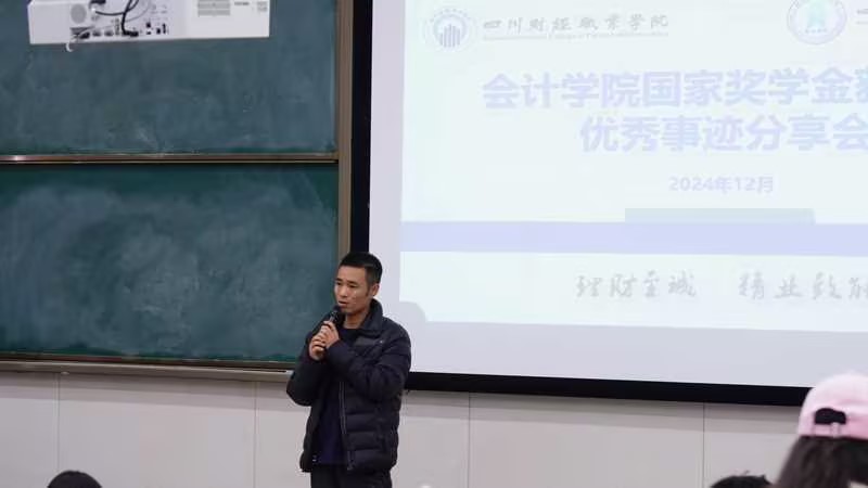 为充分展示我院优秀学子的先进事迹和精神风貌,积极发挥国家奖学金获得者榜样引领作用,营造积极进取、不懈奋斗的良好氛围,帮助同学们全面了解国家奖学金,激发学习动力。2024年12月24日会计学院在至诚楼B113举行了国家奖学金获得者优秀事迹分享会,本次活动旨在通过分享获奖者的成长故事与学习心得,为全院学生树立学习典范,激发大家的奋斗热情。