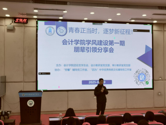 2025年2月20日,会计学院在B212教室成功举办了主题为“青春正当时,逐梦新征程”的学风建设第一期——朋辈引领分享会。本次分享会邀请到我院3名优秀毕业生进行分享。