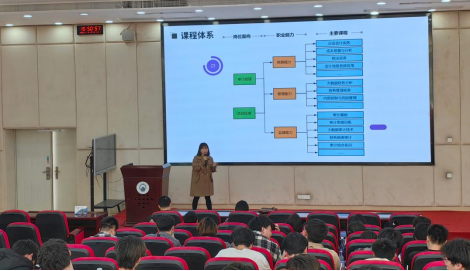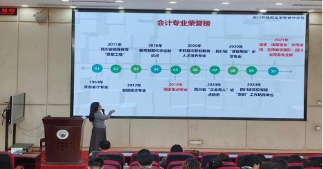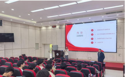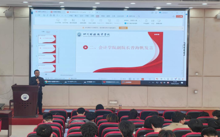曾海帆介绍了会计学院基本情况、专业设置、师资力量、就业情况以及未来发展规划等。