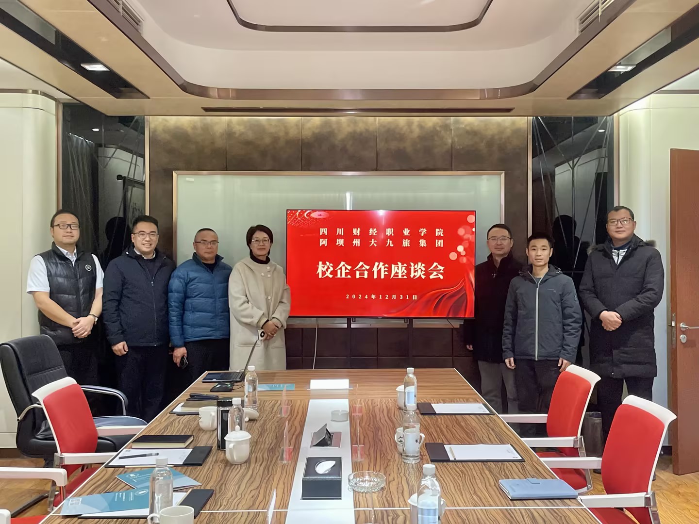 2024年12月31日,会计学院副院长曾海帆带领院团总支书记罗兰杰、专职辅导员阿别木呷赴阿坝州大九旅集团成都基地访企拓岗、洽谈校企合作事项。大九旅集团文化产业部部长、阿坝州文化旅游发展有限责任公司总经理秦勤,大九旅集团品牌战略部负责人 、大九旅集团双桥沟文旅公司总经理郭鹏,大九旅集团酒店管理公司负责人、大九旅集团新四姑娘山大酒店总经理蔡明平,阿坝州文化旅游发展有限责任公司副总经理李蓉出席座谈会。
