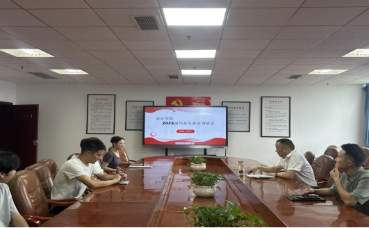 为持续做好2025届毕业生就业服务工作,会计学院于2025年6月28日召开了毕业生座谈会。会议以“倾听心声,助力成长”为主题,旨在深入了解毕业生当前就业动态,提供精准指导。会计学院党总支书记杨晓荣主持会议,辅导员陈媛、王亮及毕业生代表参会。