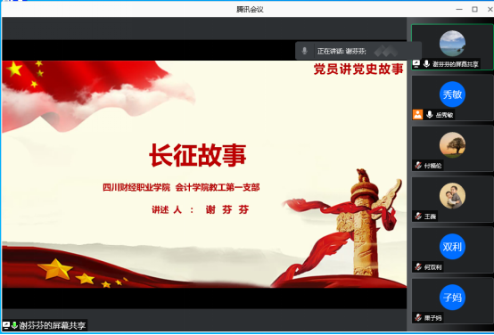 党员谢芬芬老师分享了党史故事——长征故事。长征的胜利表明,中国共产党及其领导的工农红军是一支不可战胜的强大队伍,长征中红军表现出的对革命的必胜信念和一往直前、不怕牺牲的英雄气概,成为激励共产党人和人民军队前进的巨大动力。