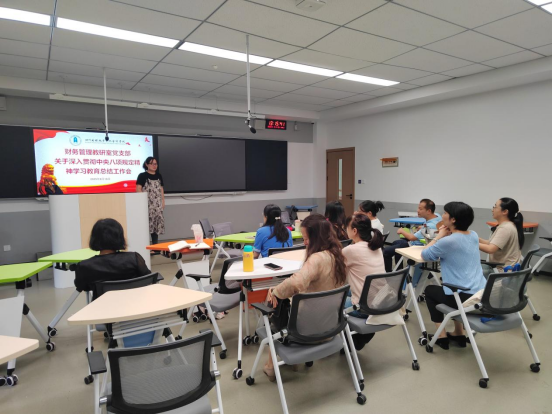 2025年9月16日,会计学院财务管理教研室党支部在B104教室召开深入贯彻中央八项规定精神学习教育总结工作会,会议由支部书记谢冬梅主持。