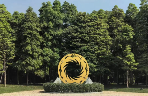 在讲解员的带领下,首先映入眼帘的是位于南大门至陈列馆主通道旁的中国文化遗产纪念雕塑,它源于金沙遗址出土的“太阳神鸟”金饰,象征着中华民族追求光明、奋发向上的精神风貌。