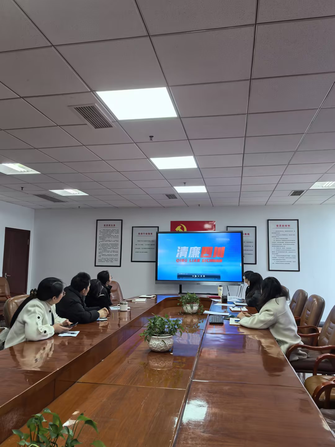 最后大家共同观看教育警示片《深入推进党风廉政建设和反腐败斗争(上)》《深入推进党风廉政建设和反腐败斗争(下)》。