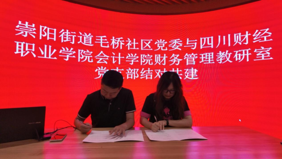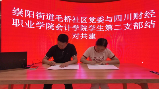 反诈宣传活动后,会计学院学生第二支部、财务管理教研室党支部与毛桥社区党委举行庄重的结对共建签约仪式。毛桥社区党委书记李翰林与会计学院学生第二支部书记夏显莲、财务管理教研室支部书记谢冬梅代表各方签署结对共建协议。