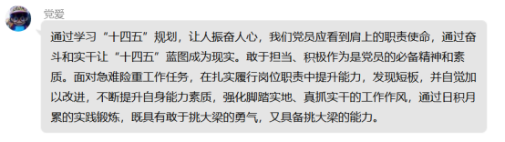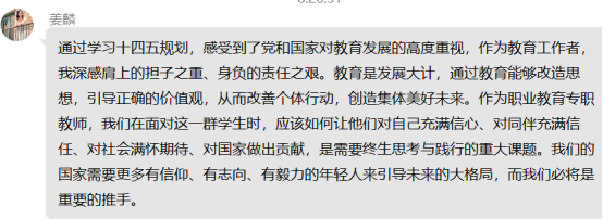 通过本月对十四五规划的学习,党员老师们纷纷感言收获很大。