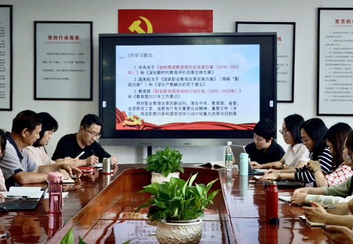 接下来,胡小凤同志领学“关于新时代职业教育改革的专题”,主要内容有以下三项:一是中央关于《加快推进教育现代化实施方案(2018—2022年)》和《深化新时代教育评价改革总体方案》;二是国务院关于《国家职业教育改革实施方案》(简称“职教20条”)和《深化产教融合的若干意见》;三是教育部《职业教育提质培优行动计划(2020—2023年)》和《教育部2021年工作要点》。