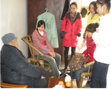 为弘扬中华民族尊老、敬老的传统美德,提高我院大学生的思想道德素质,努力营造和谐的社会氛围。“从你我身边做起”大学生爱心慰问活动在我院正式启动。12月8日下午,我院会计系08会计9班40多名学生来到本次活动第一站------龙泉敬老院,为孤寡老人送去了“冬天的温暖”。活动中大家为老人们献上自己精心准备的小礼物和慰问贺卡,并且为老人们表演节目、打扫卫生、把美味的水果送到爷爷奶奶嘴里,宁静的敬老院充满了欢声笑语。看到老人们舒心的微笑,同学们也感受到助人的快乐。通过这次爱心活动让大学生们更加懂得了如何去关心、爱护老人,更深刻的体会到“老吾老以及人之老,幼吾幼以及人之幼”的含义。