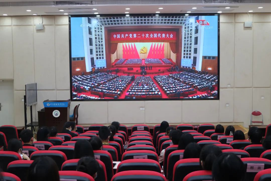 中国共产党第二十次全国代表大会于10月16日上午10点在北京人民大会堂盛大开幕,习近平总书记代表第十九届中央委员会作大会报告。7790cnm必发集团党委、团委积极响应上级号召,组织动员全院师生准时观看开幕盛况,认真聆听学习习近平总书记向大会所作的报告。