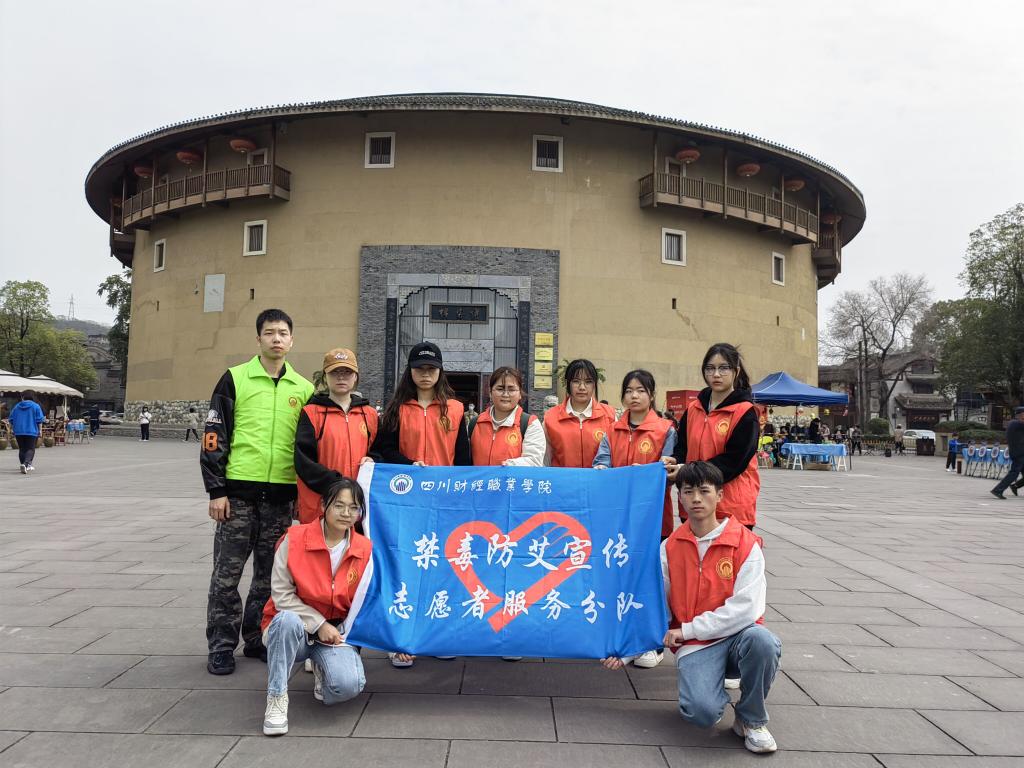 禁毒防艾,关爱生命,由禁毒防艾志愿者队组织的10名志愿者于下午14:00用派发宣传单的形式、以洛带古镇博客楼为起点,围绕洛带古镇为游客和商铺进行毒品与艾滋病的危害、预防措施等内容的宣传。