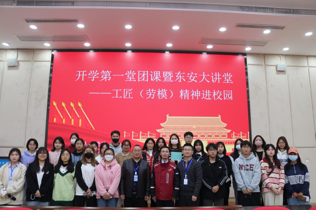 为深入学习贯彻党的二十大精神,进一步弘扬新时代劳模精神和工匠精神,鼓励当代大学生向劳模看齐,向榜样学习,做具有深厚劳动情怀的时代新人。团委于3月7日下午两点半在至诚楼212报告厅开展了开学第一堂团课暨东安大讲堂——工匠(劳模)精神进校园讲座。