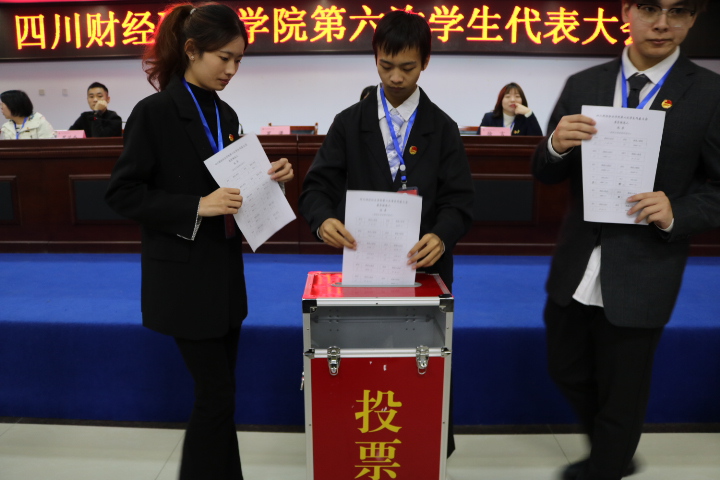 在座学生代表根据第十八届学生委员会委员及主席团候选人事迹情况介绍等,进行现场投票,选举产生了我校第十八届学生委员会委员9名及主席团成员3名。第十八届学生委员会委员当选名单有:王艳、邓雨琪、卢传玲、杨行、赵茂颖、谢海波、谢汶亭、谭丽、谭娅;主席团当选名单有:赵以涵、康嘉宁、谭娅。