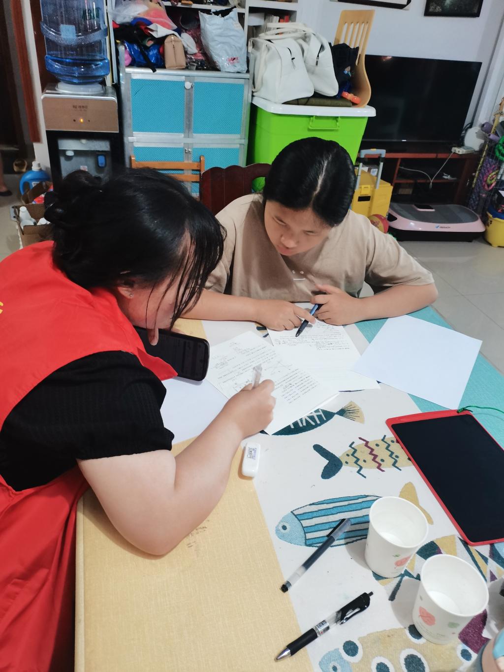 (志愿者们为帮扶对象耐心细致地辅导作业)