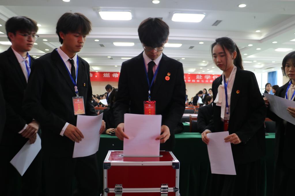 12月24日我院第七次学生代表大会在明德楼308会议室成功举办。学院党委委员、副院长罗潇,党委学生工作部部长田刚成,团委书记、学生工作部副部长高菁,各二级学院团总支书记以及110余名学生代表参会。