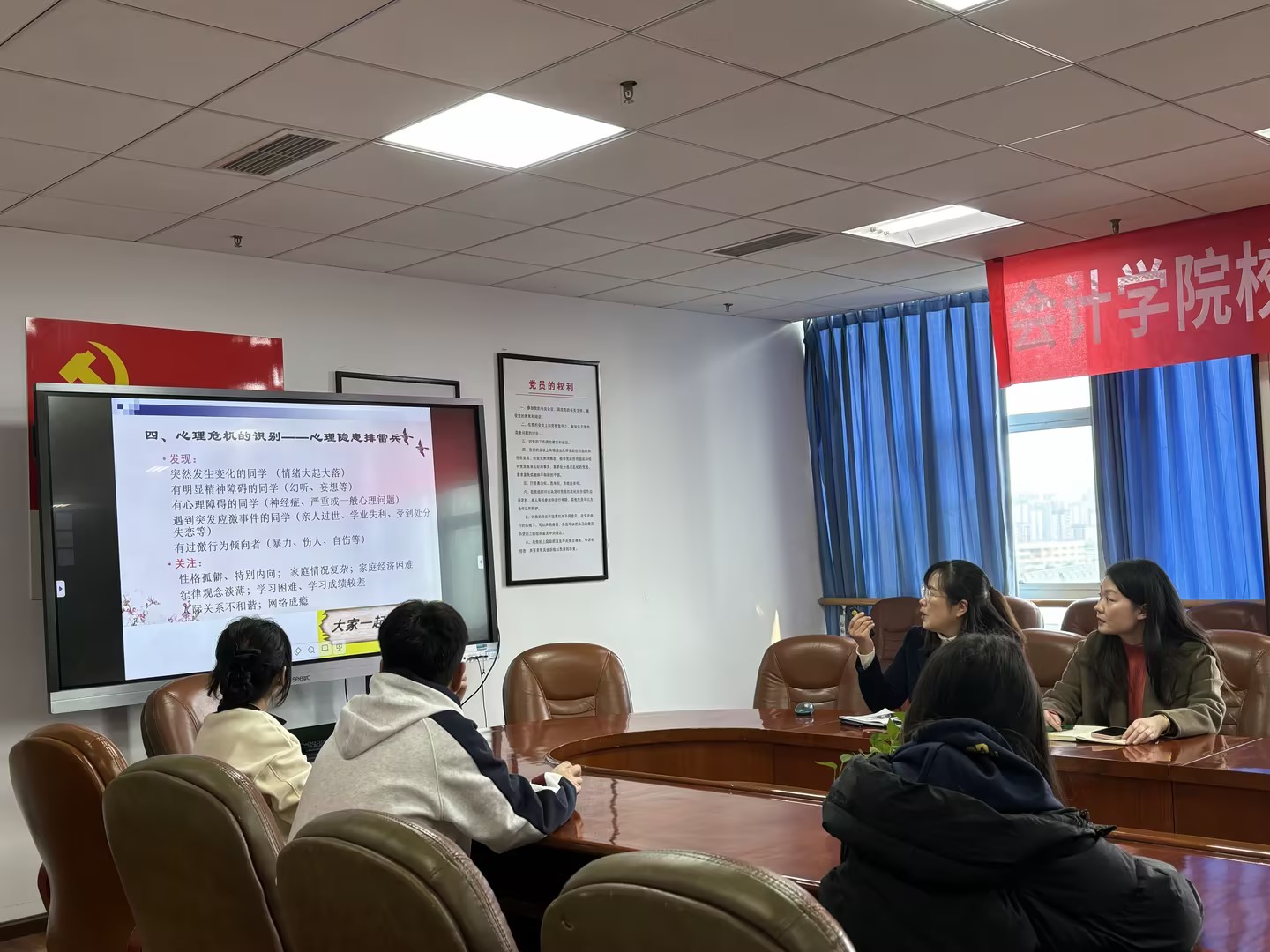 2.11月21日,会计学院“心语心愿”心理工作站召开2024级心理委员培训会议,此次会议提高了心理委员的心理健康知识和技能水平,为我院心理危机预防与干预工作打下了坚实的基础。