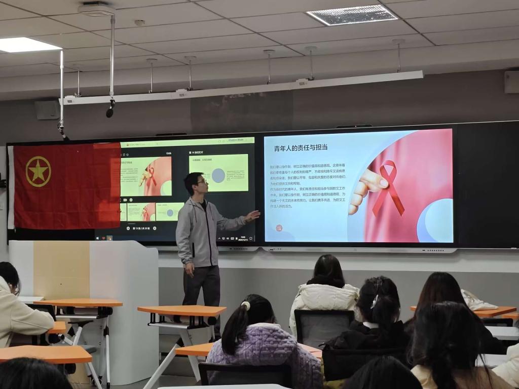 为进一步推动青年学生预防艾滋病教育工作,增强学生自我保护意识和防范意识,12月8日,校团委组织各二级学院团总支、团支部深入开展“防艾同行,青春无艾”主题团日活动,各班团支书为同学们阐述本次活动开展的重要性与必要性,详细描述艾滋病的传播途径、预防方法、治疗方式等知识,增加大家对于艾滋病的认识和了解。