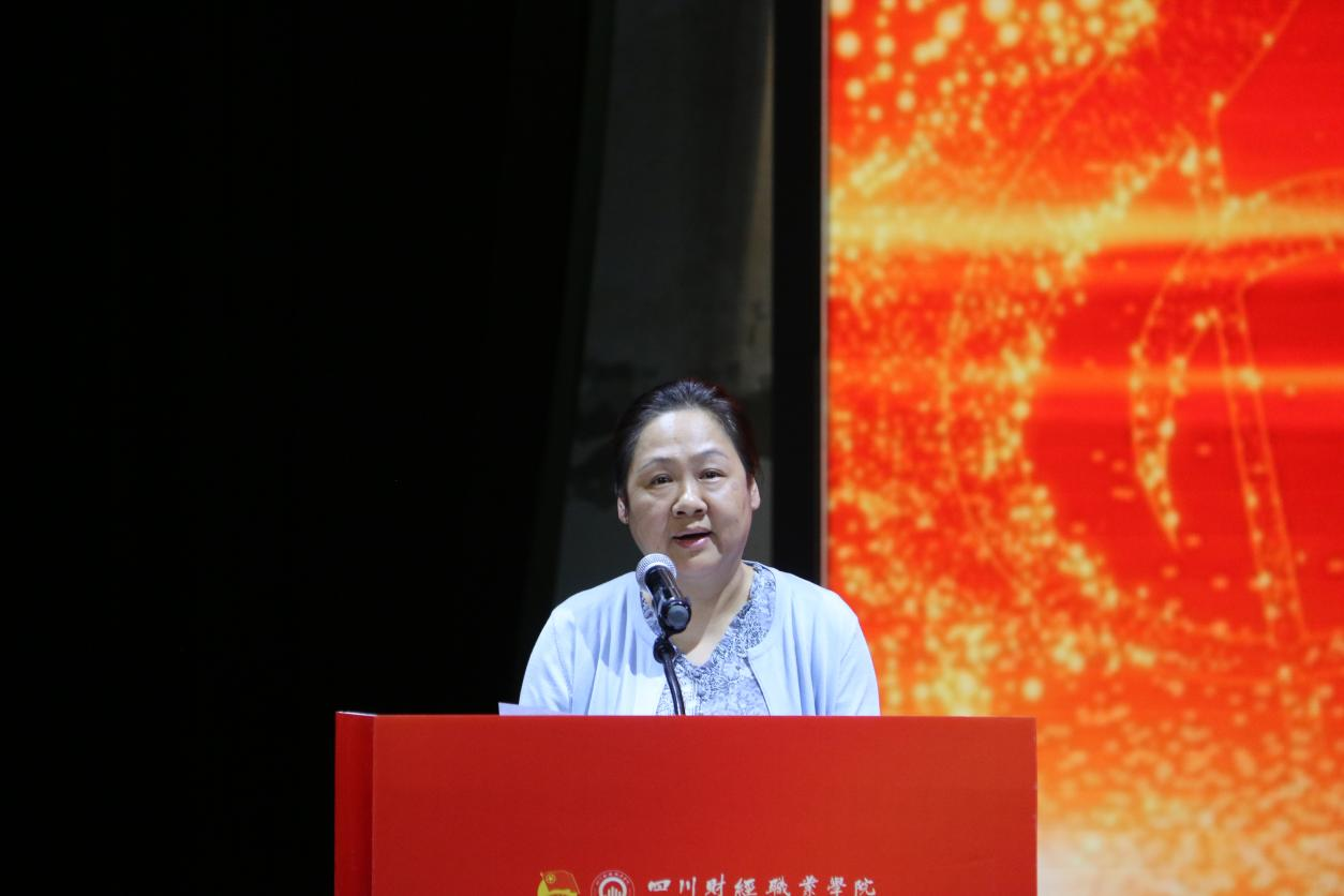 活动在谢幕表演《请党放心,强国有我》中达到高潮。五位串讲人带领全场师生齐声宣誓,以激昂的朗诵和合唱为活动画上圆满句号,充分展现川财学子自信自强、砥砺前行的精神风貌。