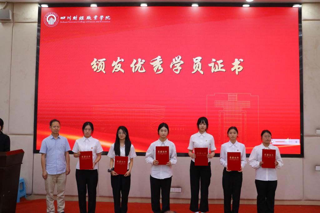 学院党委委员、副院长罗潇为第八期“青马工程”培训班学员代表颁发结业证书。