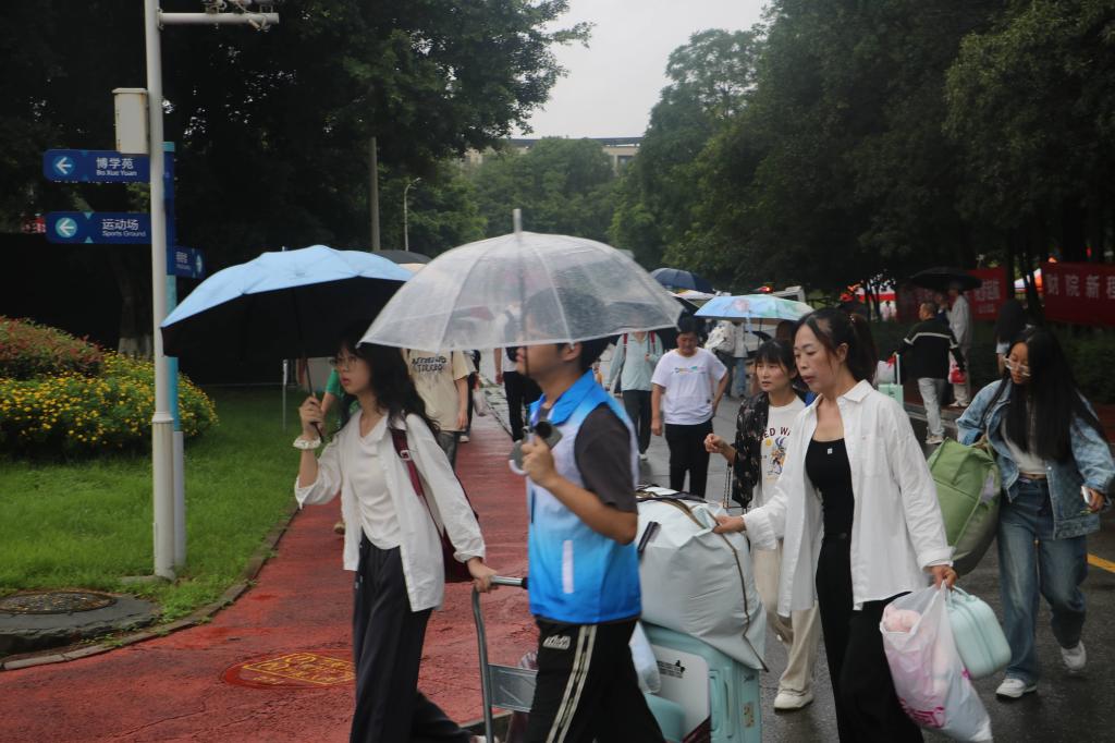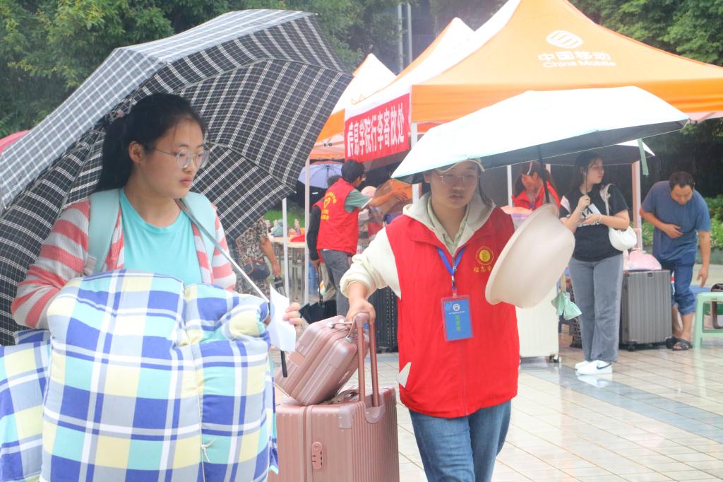 微雨如酥,绿意盎然。一场如牛毛般的细雨也没有冲刷掉2025级的“小白菜们”对于校园的热情,愿你们在这里解锁热爱,奔赴理想!我校志愿者已就位!行李我来搬,疑问我来答,有需要随时招手,让你轻松融入新环境!