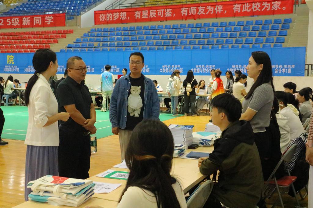 为了“小白菜们”顺利办理报到手续,各学院设置寄存处,方便新生寄存行李。体育馆里,学院的领导、老师,职能部门、各学院也为“小白菜们”保驾护航,给予“小白菜们”暖暖心意。