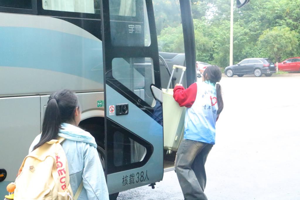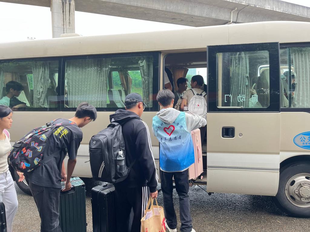 接待新生的大巴车缓缓驶入校园,车门开启的瞬间,志愿者们立刻围至车门前。他们熟练接过“小白菜们”手中的行李,肩扛手提间动作利落。“同学这边走,报到点在前前!”“重物我来搬,你跟着我就行!”一句句暖心指引,一个个忙碌身影成了新生初入校园时最安心的依靠。