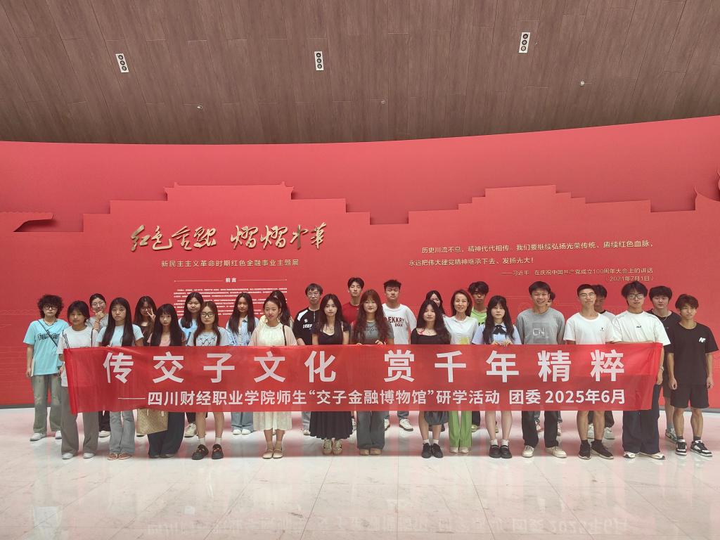 为深挖交子文化内涵,为舞台剧创作注入深厚历史文化基因,6月7日,校团委组织原创舞台剧《交子》演职人员走进成都交子金融博物馆,开展“传交子文化,赏千年精粹”主题实践研学活动。这场沉浸式的文化之旅,不仅让演职人员深入领略千年金融文化的独特魅力,更为舞台剧的艺术创作筑牢历史根基。