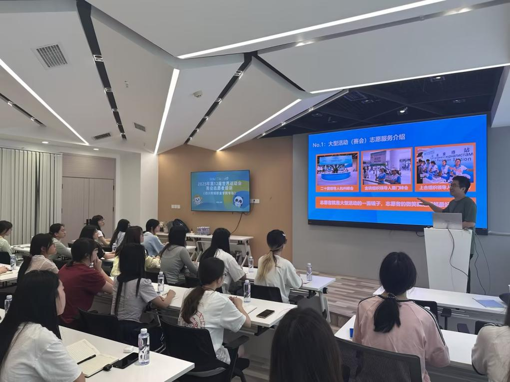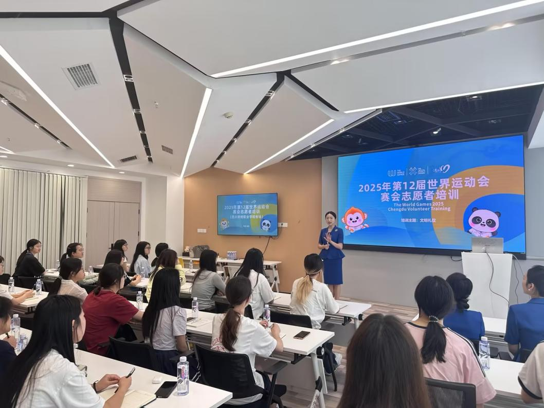 6月25日,校团委聚焦政治素养提升、安全防范、心理调试和语言技能等核心内容,由校团委高菁书记、魏雅婷老师为同学们授课。同时,高菁书记提出培训要求,期望大家以高度责任感与认真的工作态度投入到赛事培训中,用实际行动诠释青春担当,在世运会上更好地展现川财学子的精神风貌与蓬勃朝气 。