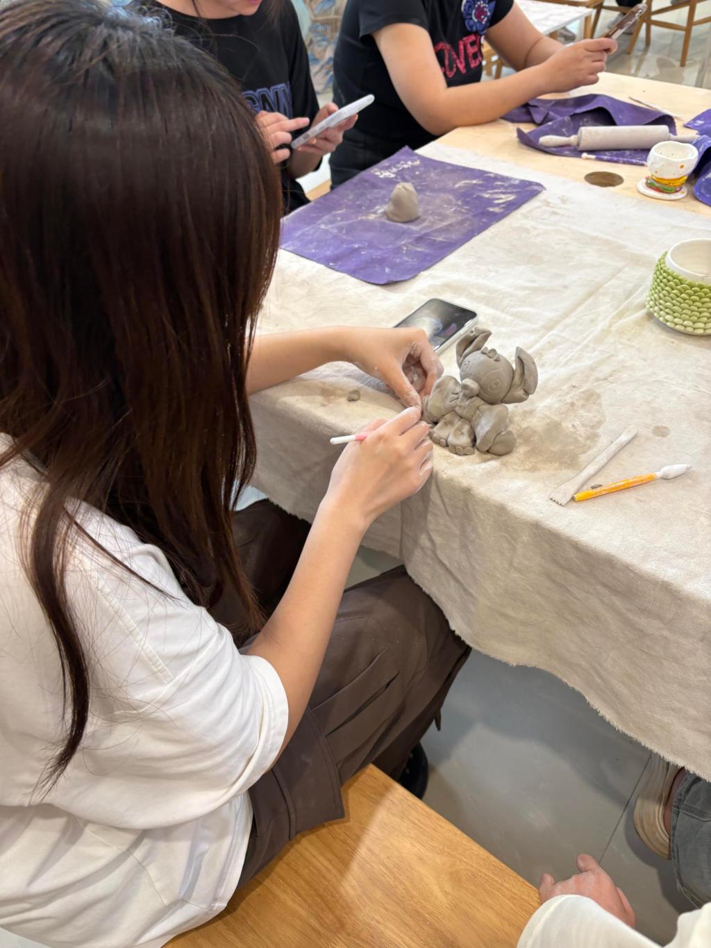 进入塑形与装饰阶段,创意的火花瞬间迸发。同学们充分发挥天马行空的想象力,将脑海中的灵感化作指尖的艺术。有人精心雕琢出憨态可掬的卡通形象,灵动的双眼与俏皮的神态跃然“陶”上;有人将校园标志性建筑微缩于陶土,以独特的视角展现校园风采。不同的设计理念在陶土上碰撞融合,缤纷的色彩搭配赋予作品鲜活生命力,每一件作品都是同学们表达个人思维与艺术见解的独特载体。