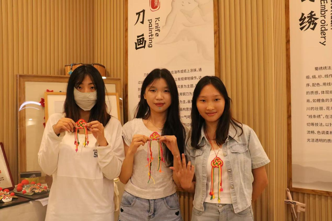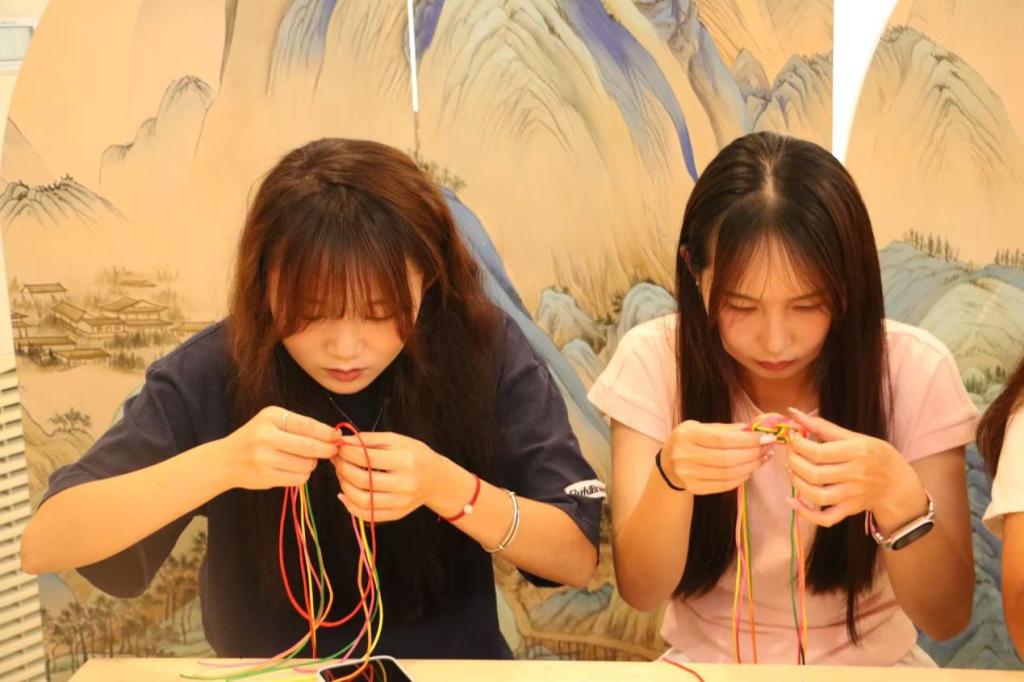 在杨老师的耐心指导下,同学们很快投入到绳编创作中。指尖翻飞间,原本松散的彩绳逐渐缠绕、打结,一个个蕴含着“吉祥如意、团圆美满”寓意的双钱结慢慢成型。从最初的生疏打结,到后来的熟练编织,同学们的脸上满是专注与喜悦。“亲手编中国结和看成品完全不一样,不仅感受到了传统工艺的巧妙,更觉得这根绳子里藏着老一辈手艺人的心血,藏着咱们中国人对美好生活的期盼。”参与活动的同学分享道。这份亲手创作的成就感,让大家对非遗文化的认同感与自豪感油然而生。