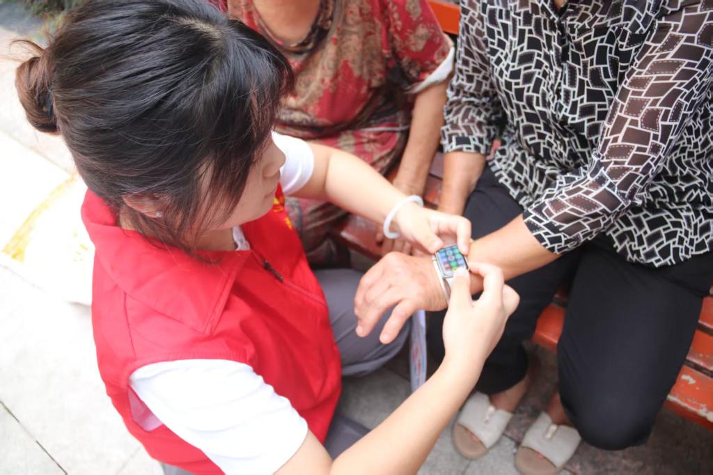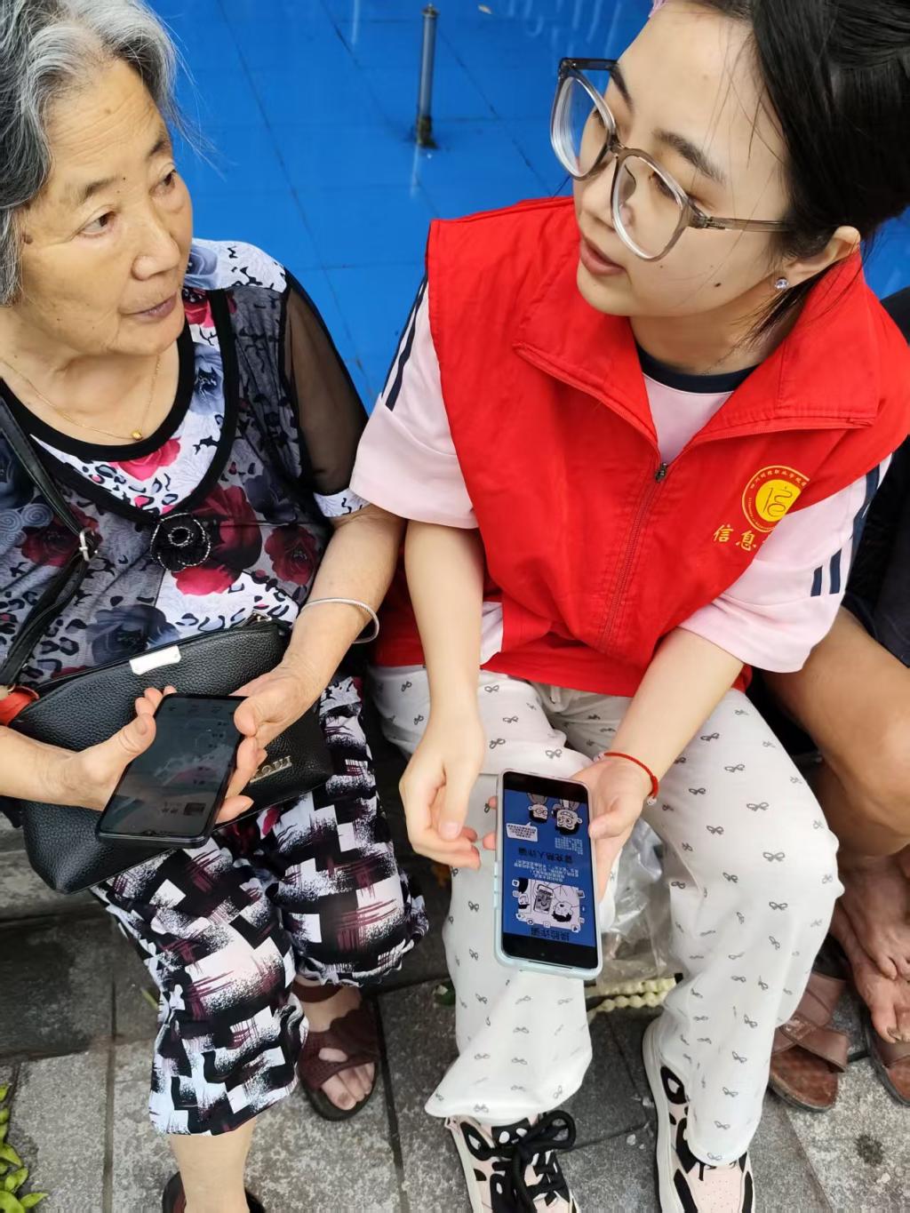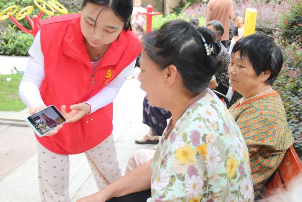 杨唐婷,信息学院人工智能技术应用专业,也是“芯”火青年志愿实践团成员。暑假期间,她将专业知识与志愿服务结合,投身智慧健康科普,为居民讲解小米手环的心率、睡眠、压力监测等功能,用通俗语言让复杂技术易于理解。还指导居民正确佩戴手环、查看数据,帮助50余户居民掌握智能健康监测,为居民健康管理提供智慧保障。