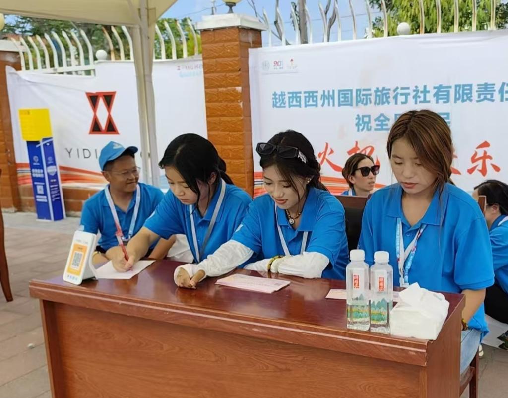 2024级金管1班 周贤,2025年暑期“清凉火把季,20℃游越西”志愿服务活动优秀志愿者,实践期间负责前期伴手礼分装、开幕式物资筹备,后期承担四川省越西中学乌托尔库音乐节售票口工作,累计完成上百份伴手礼分类包装、协助现场物资整理分发,接待各类观众咨询、区分票种答疑,同步记录售票数据。