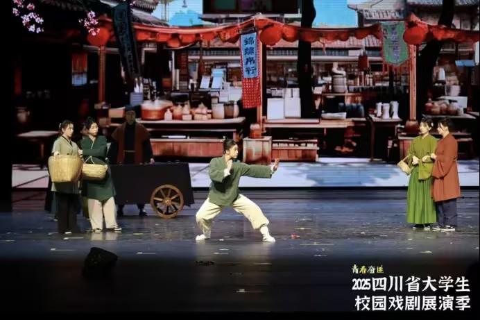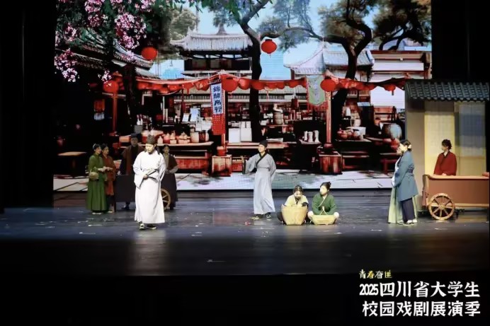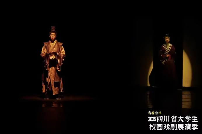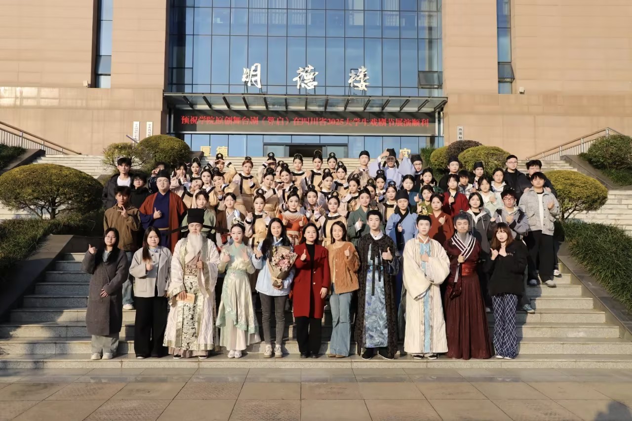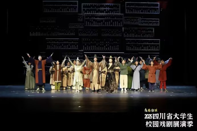 近日,由四川省文化和旅游厅、四川省教育厅、四川省文学艺术界联合会联合主办的2025四川省大学生校园戏剧展演季活动在成都金牛区新声剧场隆重启幕。我校师生携手打造的原创舞台剧《交子》片段《算启》,历经多轮严苛选拔脱颖而出,成功入选小型剧目展演名单,并于11月20日下午在新声剧场精彩亮相,以独特的财经文化视角赢得现场阵阵掌声。