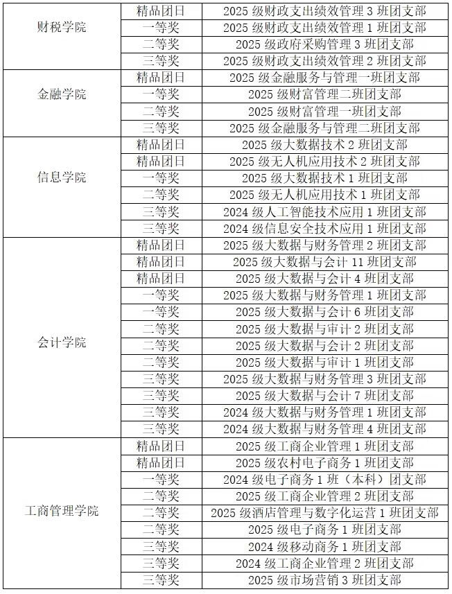 根据校团委《关于开展“学习贯彻党的二十届四中全会精神”主题团日活动的通知》,各二级学院团总支组织本学院开展了11月主题团日活动。经过各二级学院团总支审核推荐,校团委综合评审,确定以下获奖团支部,名单(排名不分先后)公示如下: