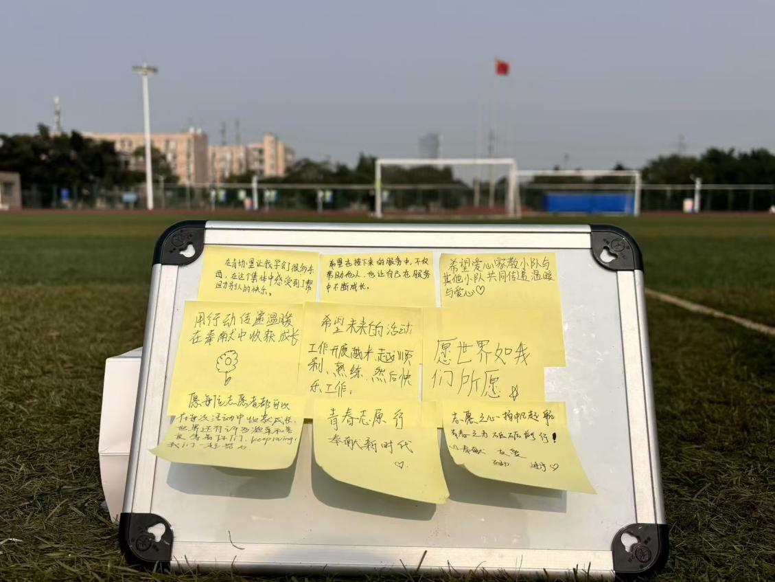 为弘扬“奉献、友爱、互助、进步”的志愿精神,凝聚青年公益向心力,12月2日,我校团委青年志愿者协会在操场开展“凝聚志愿微光,传递温暖力量”12·5国际志愿者日主题活动。志愿者们以故事织就温情,以心愿锚定初心,让“微光”在志愿墙前生长成可触可感的温暖力量。