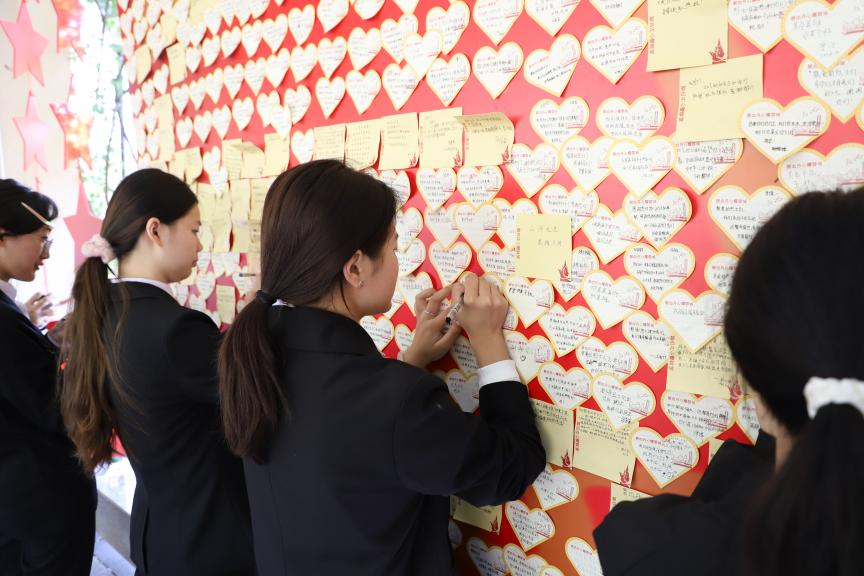 活动中,同学们前往无名烈士墓区祭拜致敬。面对为国家和人民壮烈牺牲、未留姓名的革命英雄,同学们肃立默哀、敬献鲜花,以最庄重的仪式表达对先烈的无限追思与崇高敬意。随后,大家亲手书写寄语卡片,将缅怀之情、敬仰之心化为真挚文字,庄重许下“请党放心,强国有我”的青春誓言。