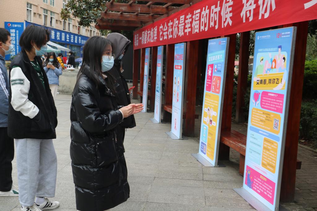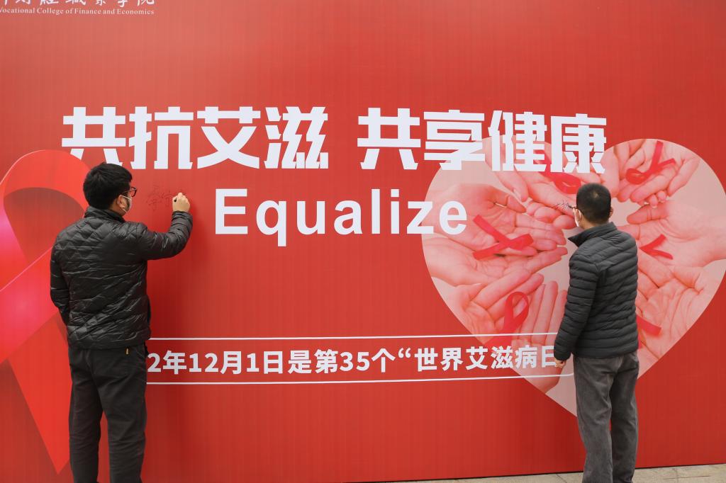 为了宣传艾滋病的知识,世界卫生组织于1988年的1月将每年的12月1日定为世界艾滋病日。今年是第三十五个世界艾滋病宣传日,其主题为“共抗艾滋,共享健康”。为普及艾滋病和毒品相关知识,帮助大学生正确认识并有效预防艾滋病,我院于12月1日中午12点30分在学校公寓门口组织学生干部观看相关海报展览以及展板签到。