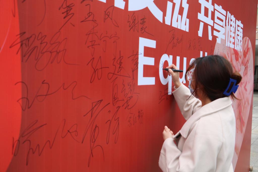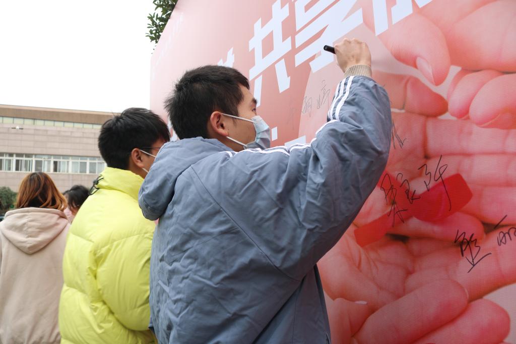 活动伊始,由团委副书记马宁、季宁宁在“共抗艾滋 共享健康”的展板上进行签名,随后同学们也进行了签名留影。 签名结束后,大家在公寓门口的寝室长廊观看有关艾滋病宣传的海报。有的海报宣传艾滋病日的标志、艾滋病传播方式及预防及救治艾滋病等;有的呼吁大家同情和理解艾滋病人,号召同学支持反歧视工作;有的教大家如何正确对待两性关系、毒品危害等。宣传的内容形式很丰富,但是一个响亮的口号一直时刻提醒着我们,那就是“拒毒防艾”从自己做起。