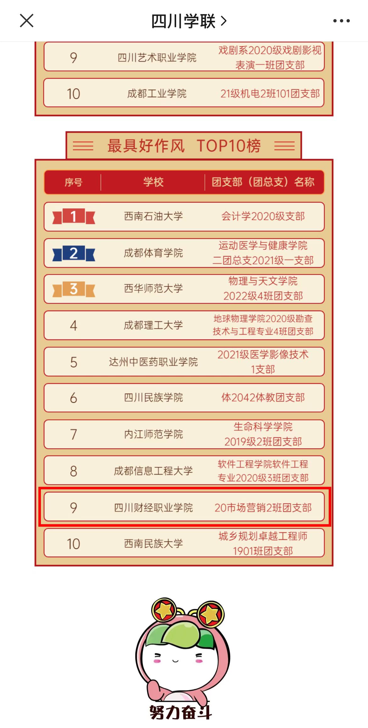 四川省高校“活力团支部”最具好作风TOP榜前10