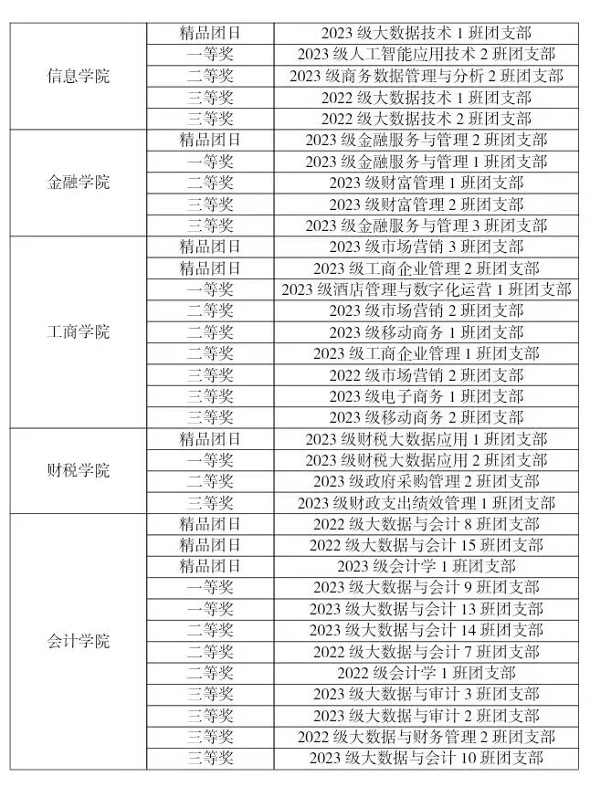 根据校团委《关于开展“树立正确就业观”主题团日活动的通知》,各二级学院团总支组织本学院开展了6月主题团日活动。经过各二级学院团总支审核推荐,校团委综合评审,确定以下获奖团支部,名单(排名不分先后)公示如下: