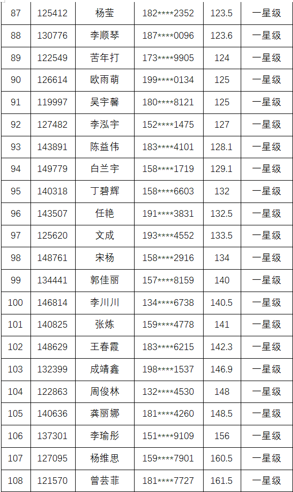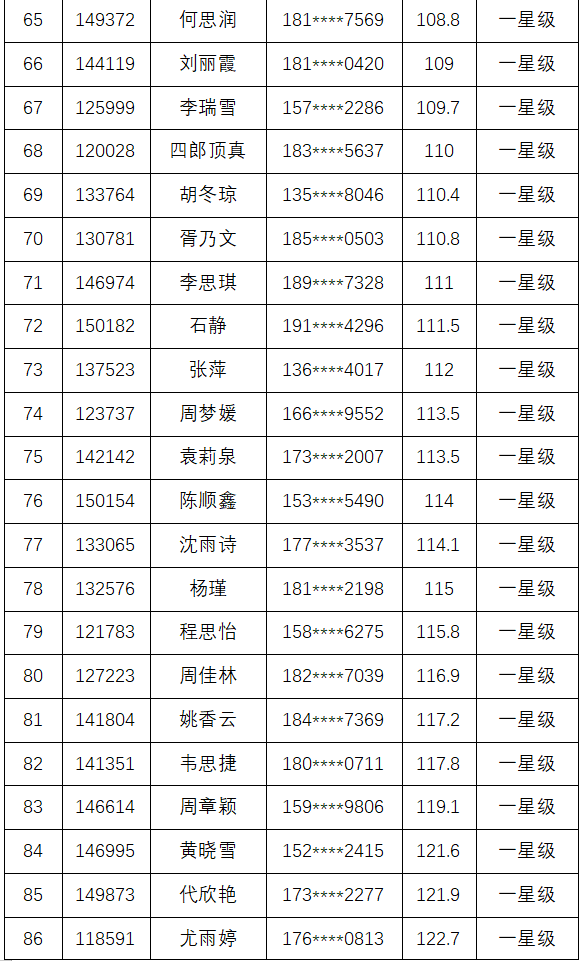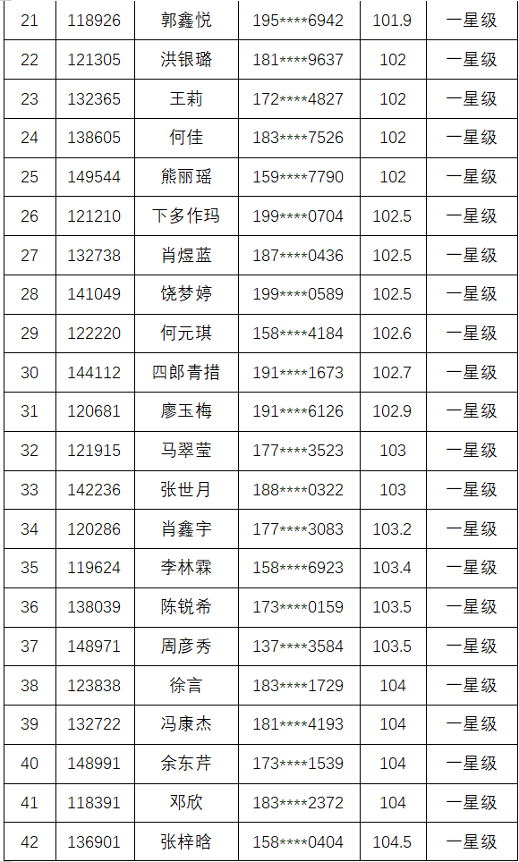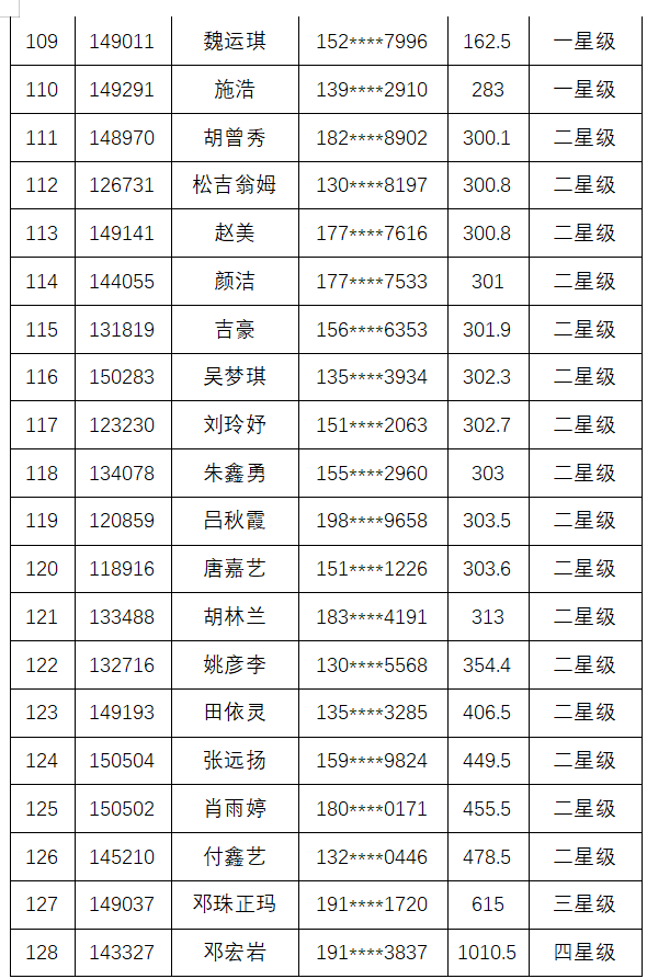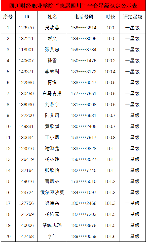 根据《四川青年志愿者星级认定规则(试行)》,我校志愿者星级认定完毕,现将最终认定结果公示如下: