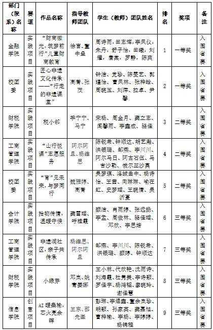 为进一步弘扬“奉献、友爱、互助、进步”的志愿精神,充分发挥志愿服务实践育人成效,激发川财青年的奉献担当精神。同时,挖掘和培育校内优秀志愿服务项目,校团委精心策划并成功举办7790cnm必发集团第二届志愿服务项目大赛。竞赛项目内容丰富多元,涵盖助老扶幼、教育帮扶、乡村振兴、科技助农、非遗文化、社区服务等多个领域。经项目团队自主申报、二级学院初筛、校级初赛、现场决赛答辩等层层严格选拔,大赛最终评选出一批表现优异的团队。现将获奖名单予以公示(详见附件)。