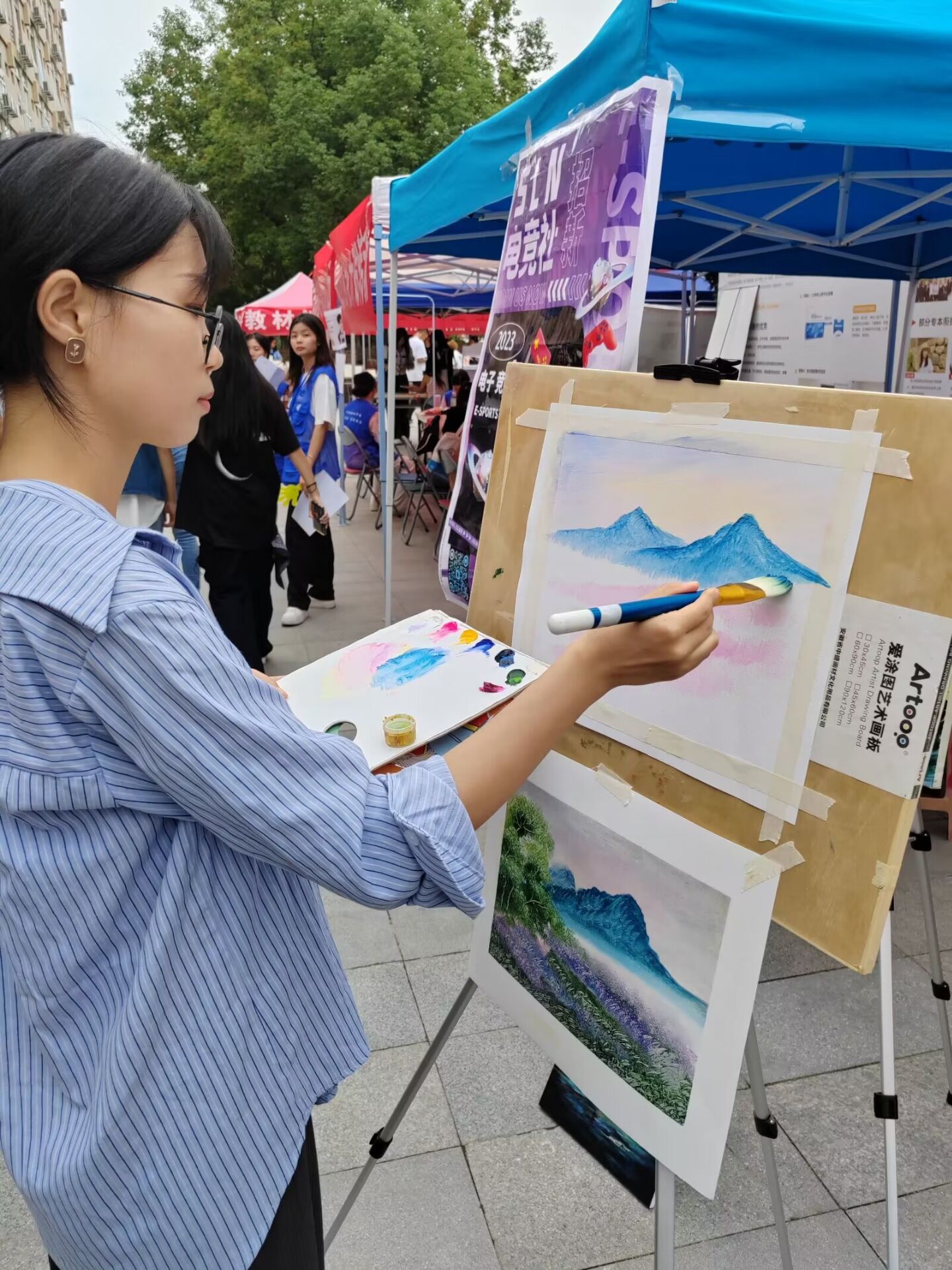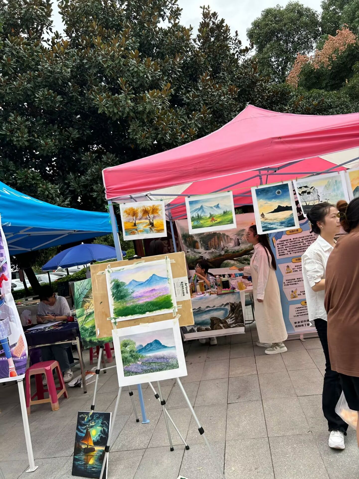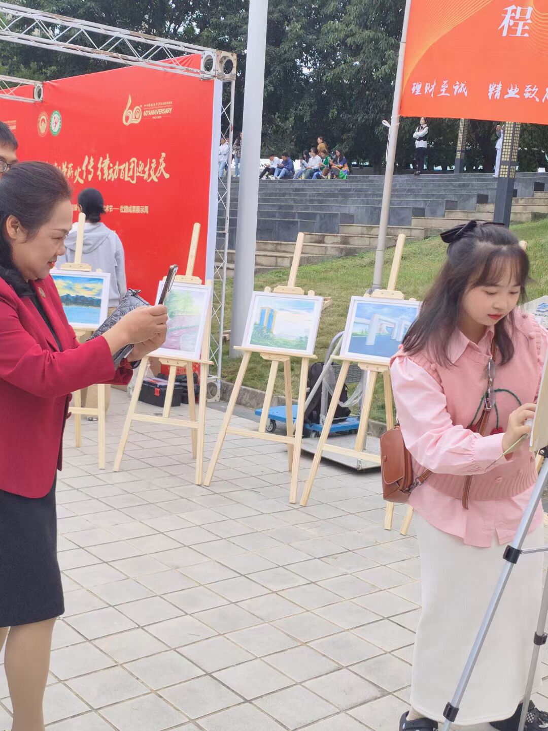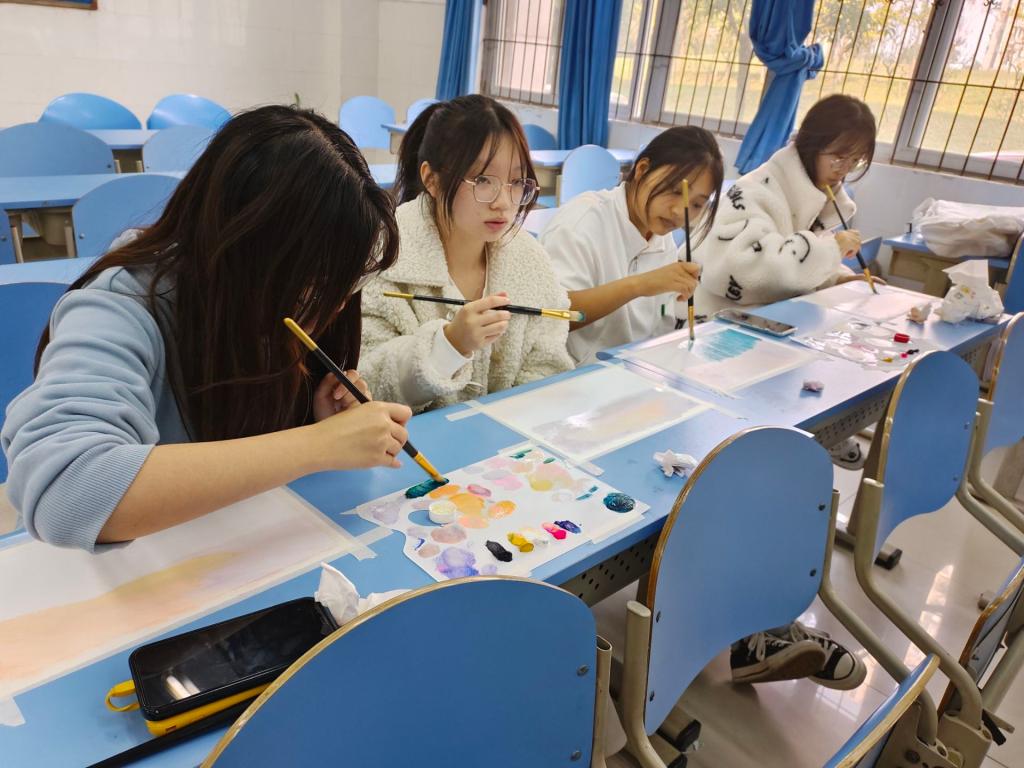 在闲暇之余,社团根据学校的安排,在社团指导老师与会长的带领下进行校内外风景写生。