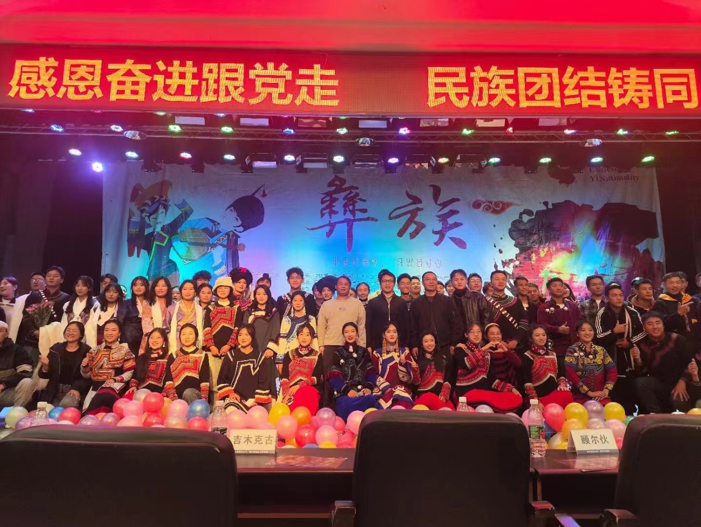 在彝族年来临之际,为弘扬中华民族优秀传统文化,促进民族团结,铸牢中华民族共同体意识,构建团结、友爱、和谐的友谊。索玛花协会收到了来自四川师范大学的诚挚邀请,参加彝族年晚会活动现场并且参与演出。此次活动增强了两所学校的少数民族同学之间的友谊,借在这个重要的节日,他们互相送上祝福,促进了两所高校少数民族同学之间的文化交流与学习。