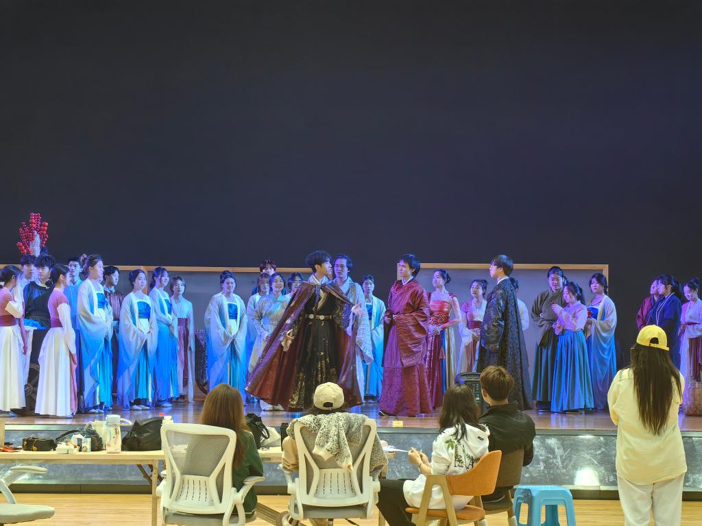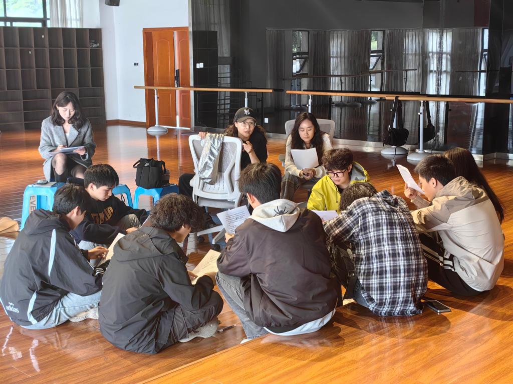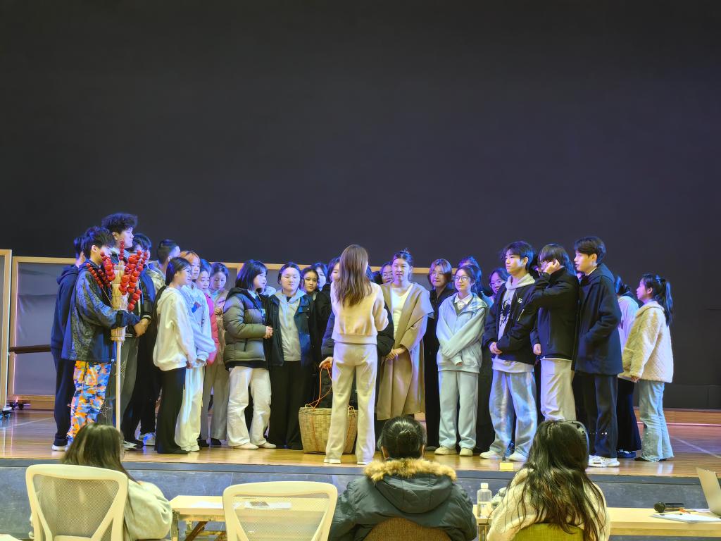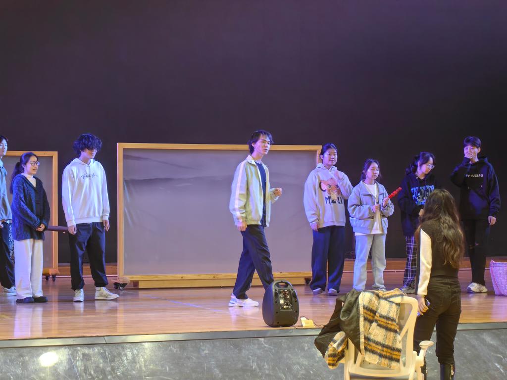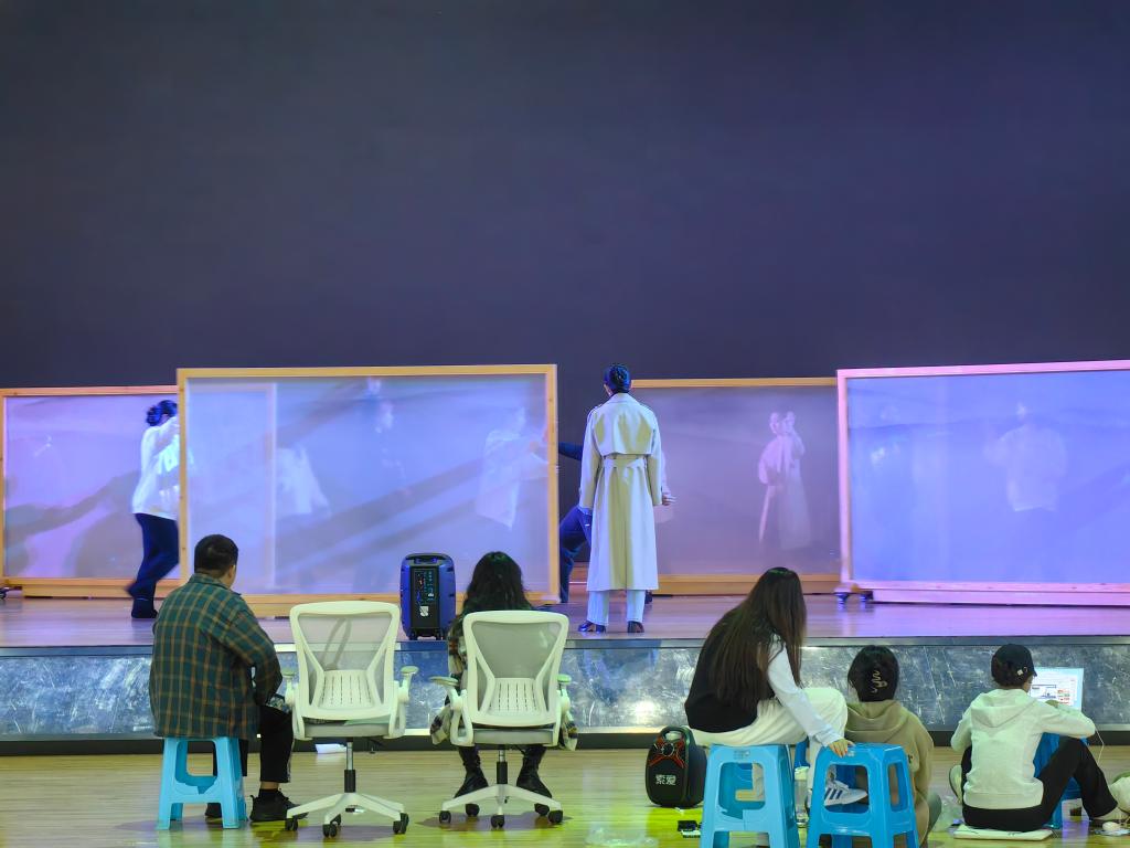 关于本次戏剧展演,学院领导对《交子》舞台剧的集训工作给予了高度关注与支持。学院党委委员、副院长罗潇,院团委书记高菁莅临集训现场为演员们加油鼓劲,院团委朱珠老师多次亲临集训现场与演员们进行积极的沟通交流,帮助演员们及时解决排练过程中遇到的问题和困难。领导老师们的关怀和鼓励让演职人员们倍感温暖和振奋,更加坚定了他们为观众们呈现一场精彩绝伦的演出的决心。