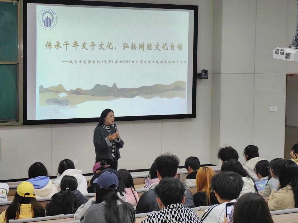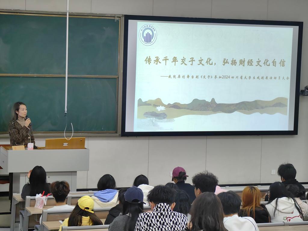 近日,由我院推送的原创舞台剧《交子》经评审团层层审查,脱颖而出,正式入选“2024四川省大学生戏剧展演”小型剧目,并将于11月26日在成都市锦江剧场正式展演。《交子》是我院精心打造的文化名片,故事以北宋时期益州(今成都)为背景,通过生动的话剧和舞蹈表演,再现了世界最早纸币“交子”的诞生历程和其对人类文明的深远影响。该剧旨在传承和弘扬中华优秀传统文化,增强文化自信,展现财经文化的独特魅力。