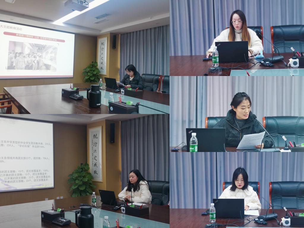 为有效总结2022年我院共青团的工作,对2023年重点工作进行部署,进一步深化共青团改革,加强学院团组织建设,不断激发团组织活力,院团委于2023年1月3日在明德楼913召开2022年度共青团工作述职会议。参与本次会议的有党委委员、副院长罗潇,团委兼职副书记季宁宁,各二级学院团总支书记,团委指导老师。本次会议由团委副书记(主持工作)马宁主持。