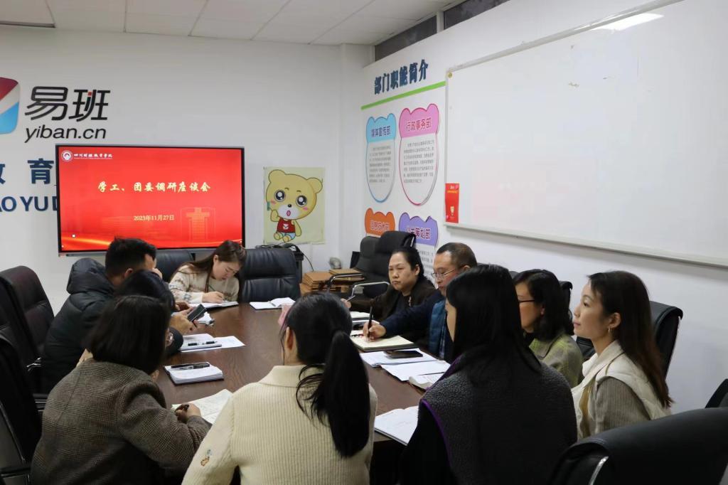 为深入了解学院工作,全面促进我院顺利展开校园建设相关工作,11月27日下午,学院党委书记张华,党委委员、副院长罗潇在团委办公室开展学工、团委调研座谈会,学生工作部部长田刚成、团委书记高菁、学工及团委各位老师参加本次座谈会。